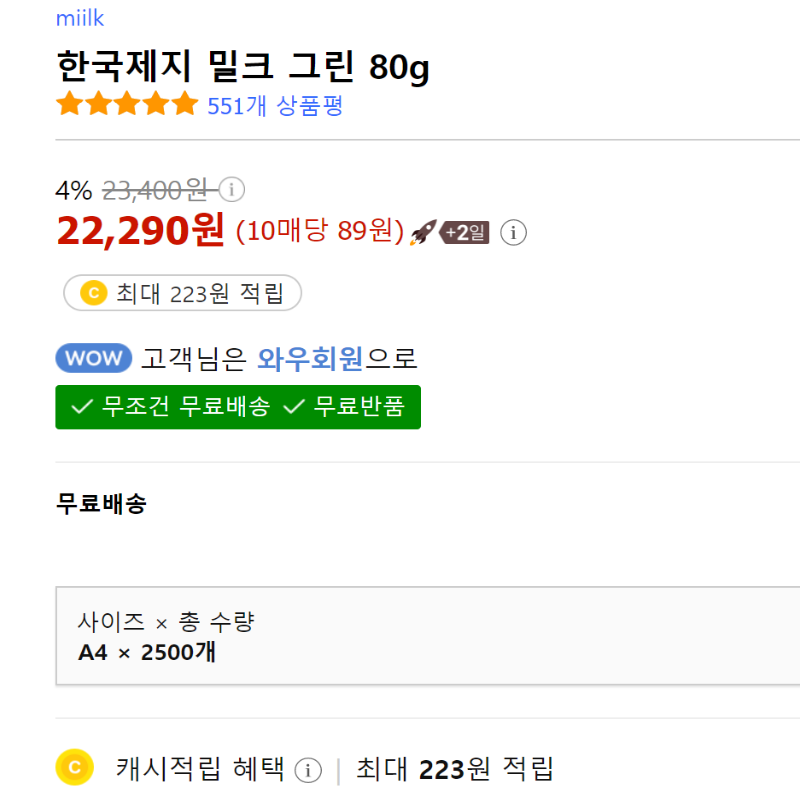 도톰한 80g A4용지 알뜰하게 구매하세요.