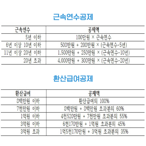 즉, 퇴직소득금액에서 근속연수공제를 적용해 환산급여를 산출한 후, 이 환산급여에서 환산급여공제를 빼고 계산합니다.